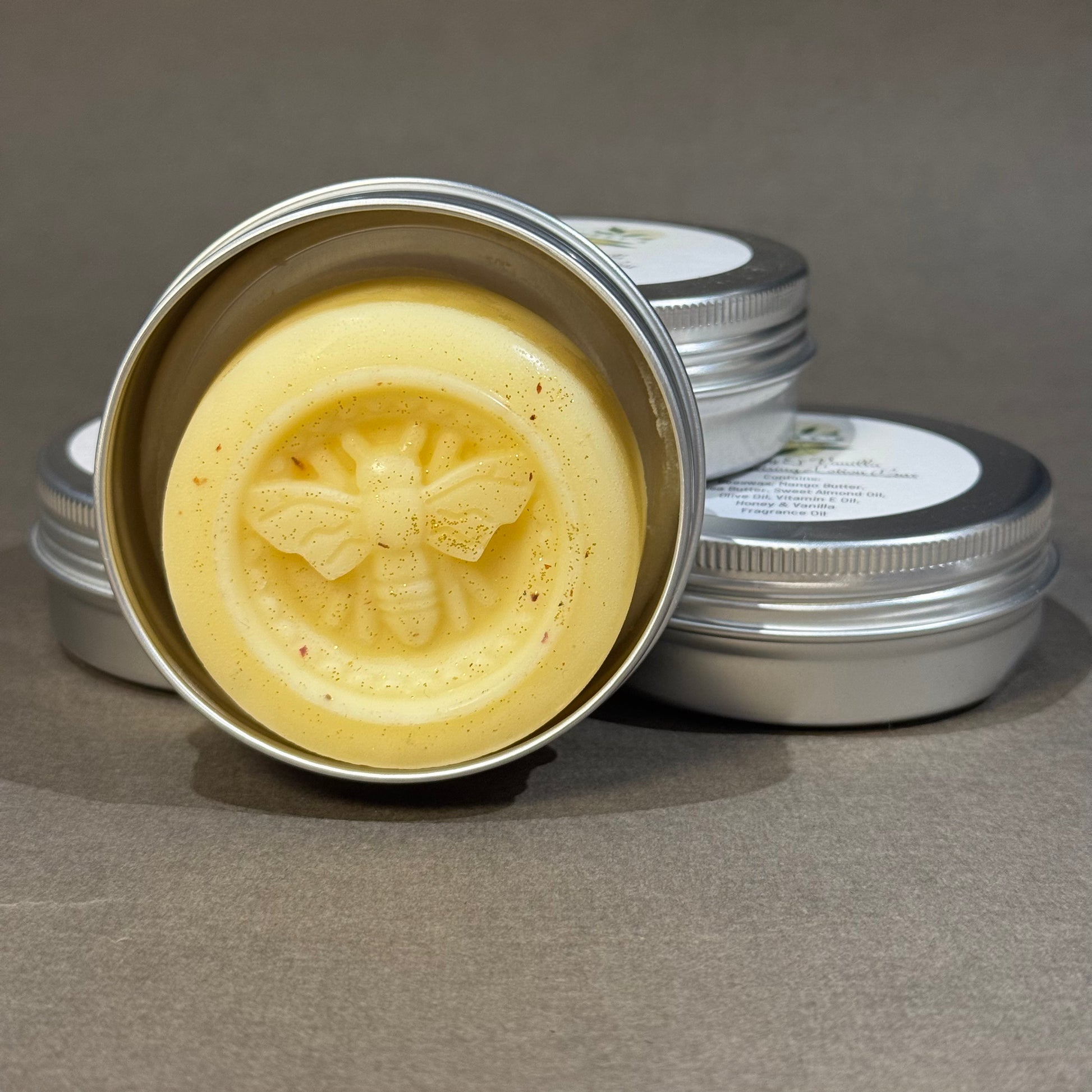 Contains: Mango Butter, Shea Butter, Flower infused olive oil, Beeswax, Vitamin E Oil, Almond Oil & Essential Oils.